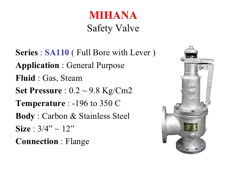 Mihana Seisakusho is one of Japanese top maker of Safety Relief Valve for General and Process use. Cover wide range of Materials, Pressure Rating, Size & Connection.